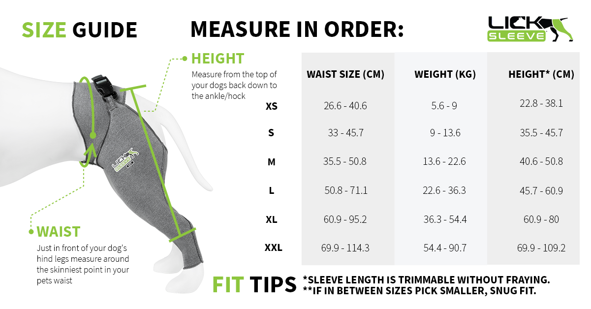 Most dogs should not need to wear an e-collar in addition to the Lick Sleeve®. There are however a few exceptions for dogs that exhibit higher levels of anxiety or have a history of chewing things up. These patients have a higher risk of attempting to chew at the Lick Sleeve®, but most patients tolerate it well and leave the sleeve alone. We recommend that you watch your patient for the first few hours that the Sleeve is on to see if they attempt to chew it.